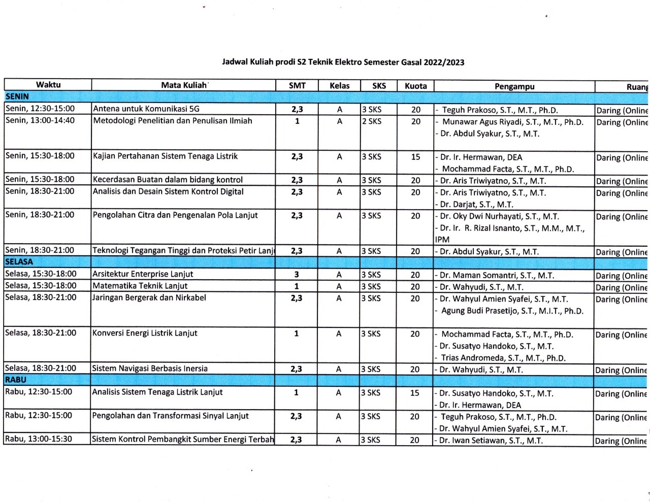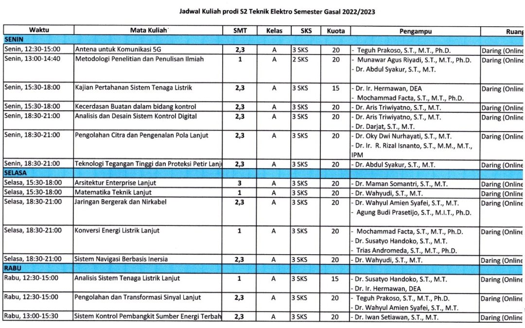 Magister Teknik Elektro Jl. Prof. Soedarto, SH, Tembalang, Semarang. Jawa Tengah, Indonesia. Kode Pos 50275 Telp : 024 - 7460057 Fax : 024 - 7460057